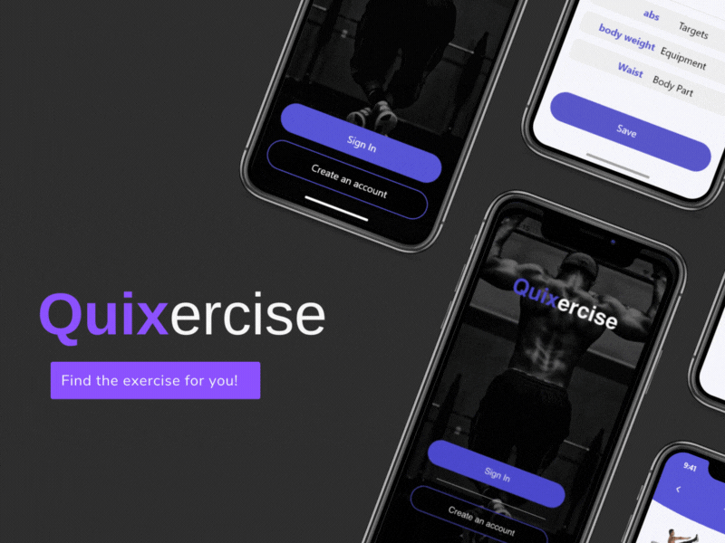 A user-friendly exercise app that enables users to quickly search for exercises by body part, target muscle, equipment, or name, view GIF demonstrations, and save exercises for easy access on any iOS device.